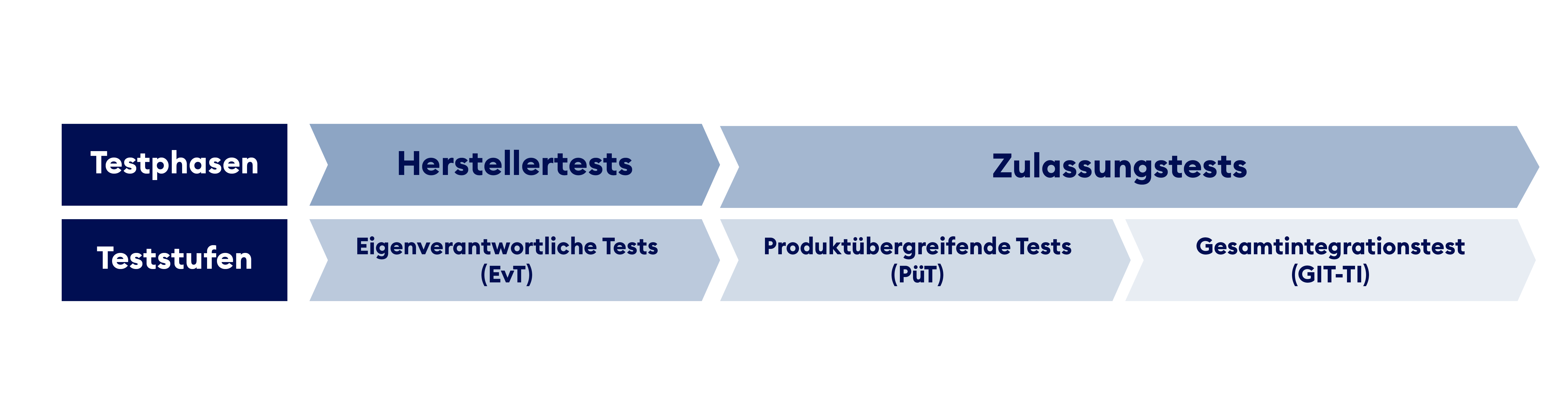 Eigenverantwortlich durchgeführte Tests der Hersteller zur Sicherstellung der technischen und funktionalen Anforderungen. - Zulassungstests der gematik: